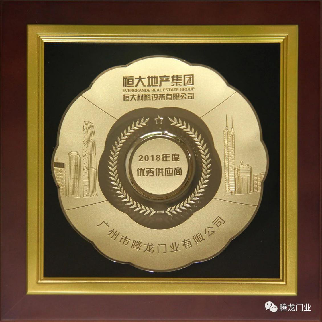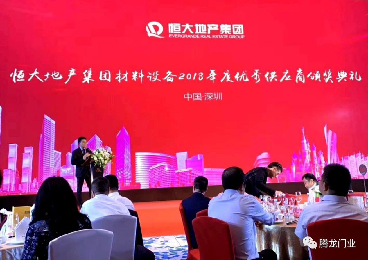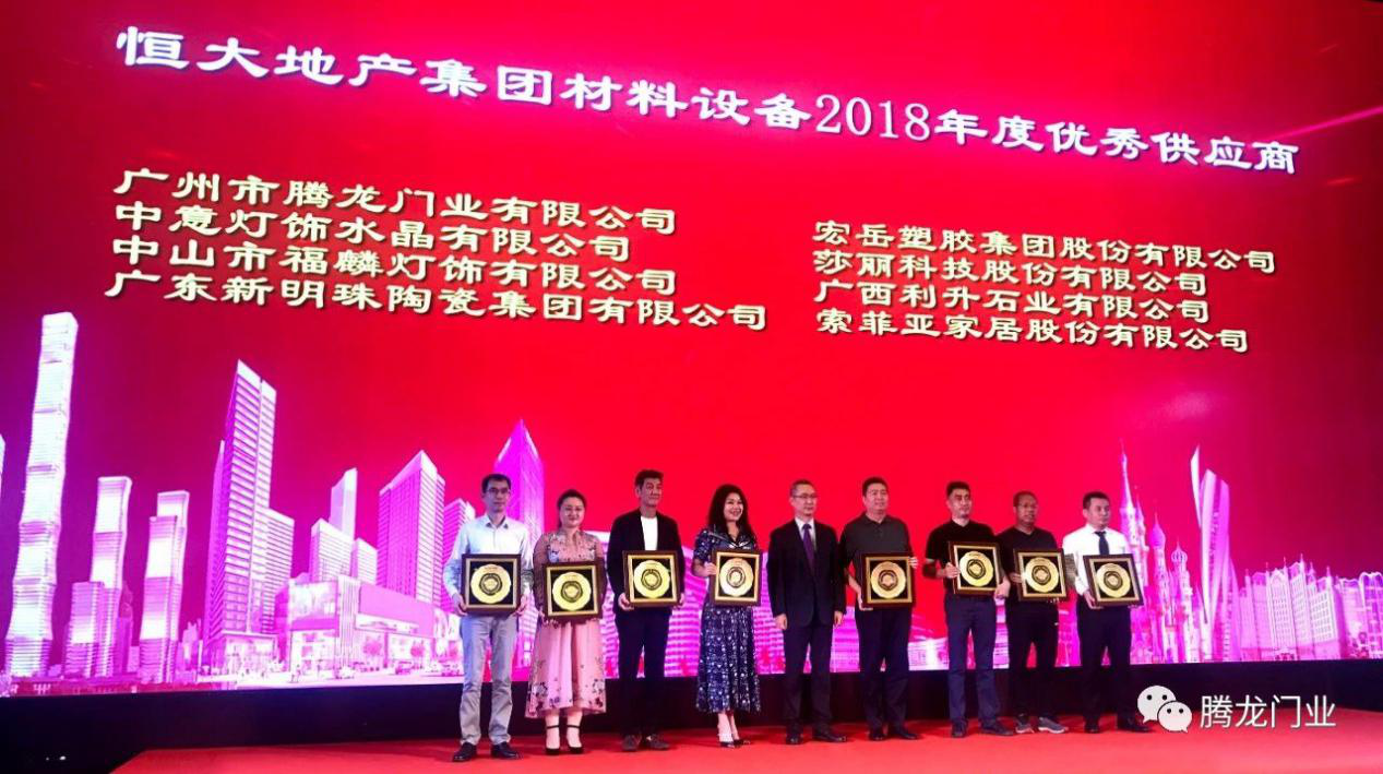 On May 16, the 2018 Excellent Supplier Award Ceremony of Evergrande Real Estate Group's Materials and Equipment was held in Shenzhen. This supplier conference commended excellent partners who have supported and promoted the development of the enterprise in the past year. Tenglong Door Industry was awarded the title of "Excellent Supplier". The chairman of the company, Mr. Hu Gengran, was invited to attend the meeting and accepted the award on behalf of the company. This honor has been won for many years, and it is also the eighth time the company has won the title of "Excellent Supplier" since its cooperation with Evergrande Real Estate Group.